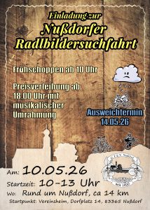 Auf einer Strecke von 14 km in und um Nußdorf sind wieder einige Fotos zu suchen und zwischendurch können an den Spielestationen zusätzliche Punkte gesammelt werden. Für Essen und Trinken ist am Vereinsheim und auf der Strecke ausreichend gesorgt.