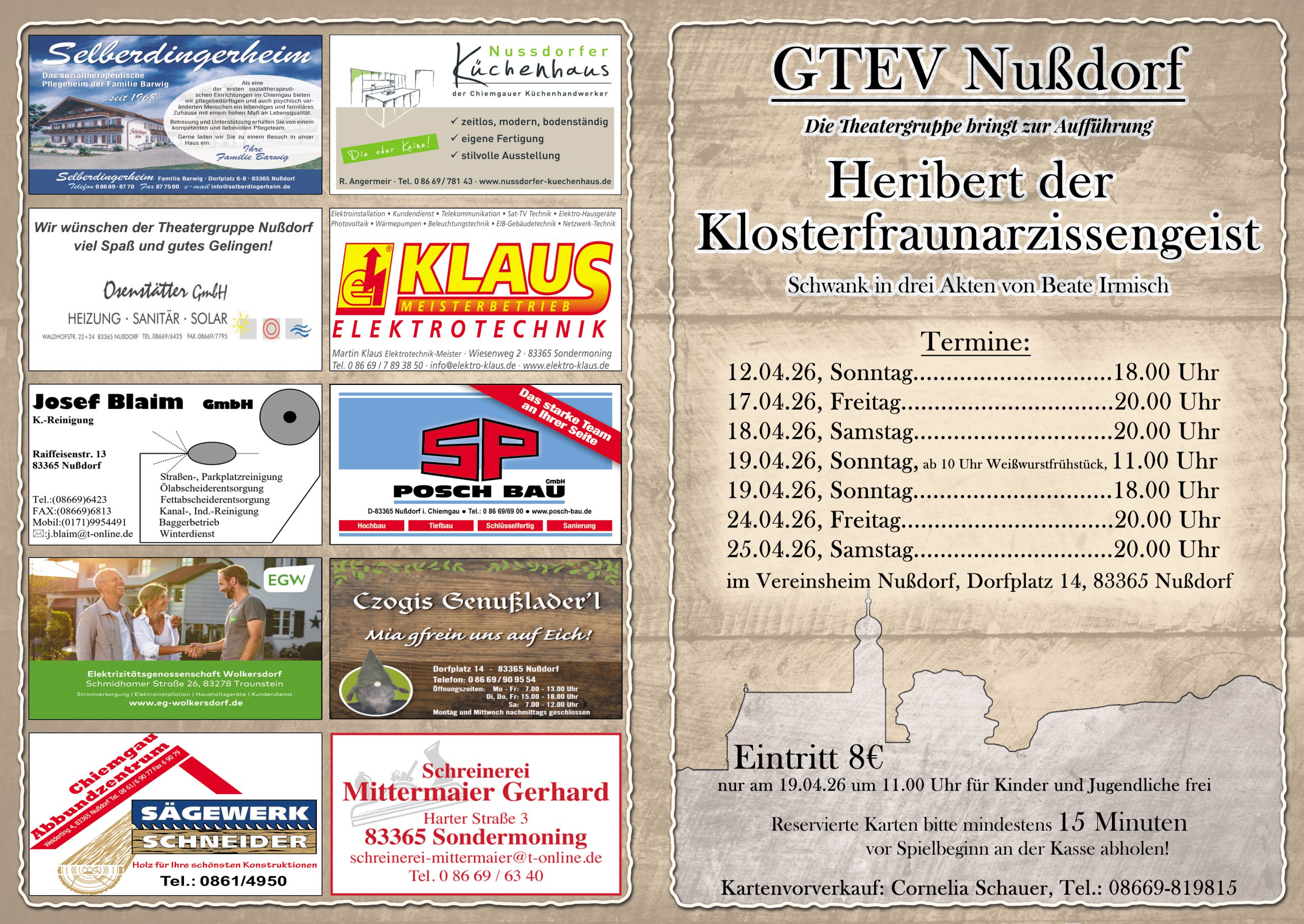 Karten ab sofort erhältlich bei Cornelia Schauer unter der Telefonnummer 08669 / 819815!