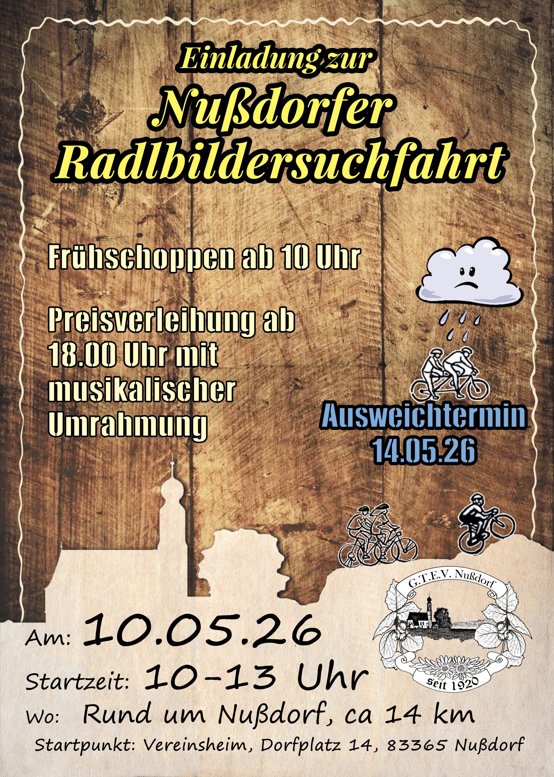 Auf einer Strecke von 14 km in und um Nußdorf sind wieder einige Fotos zu suchen und zwischendurch können an den Spielestationen zusätzliche Punkte gesammelt werden. Für Essen und Trinken ist am Vereinsheim und auf der Strecke ausreichend gesorgt.